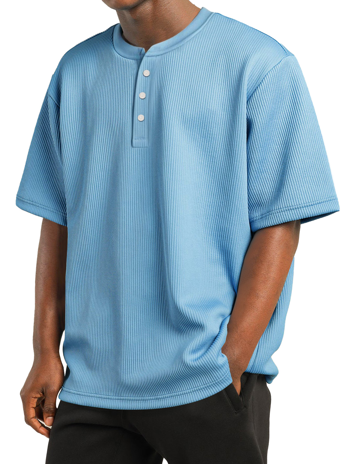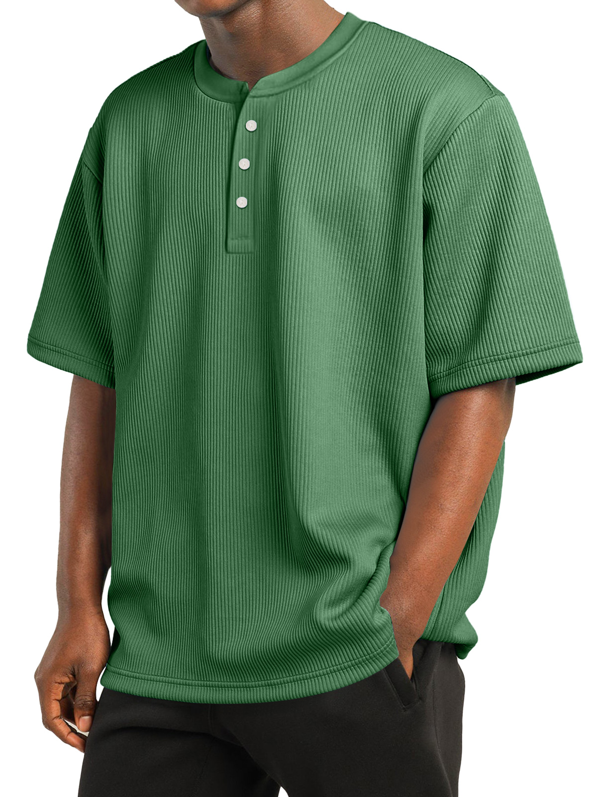 Men's Retro Everyday Pleated Texture Button Solid Color Short Sleeve Henley Shirt