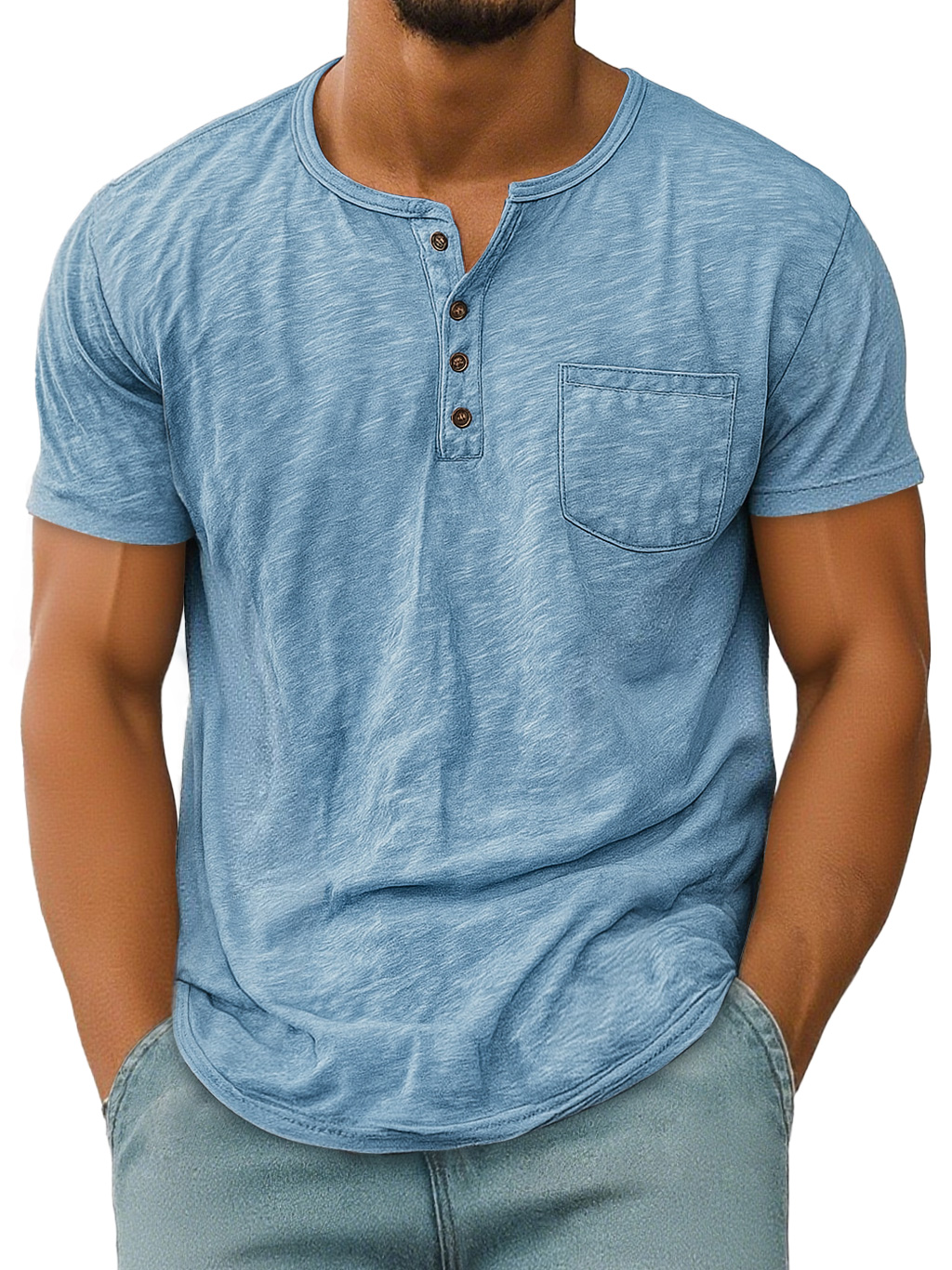 Men's Retro Everyday Casual Pocket Comfort Short Sleeve Henley Shirt