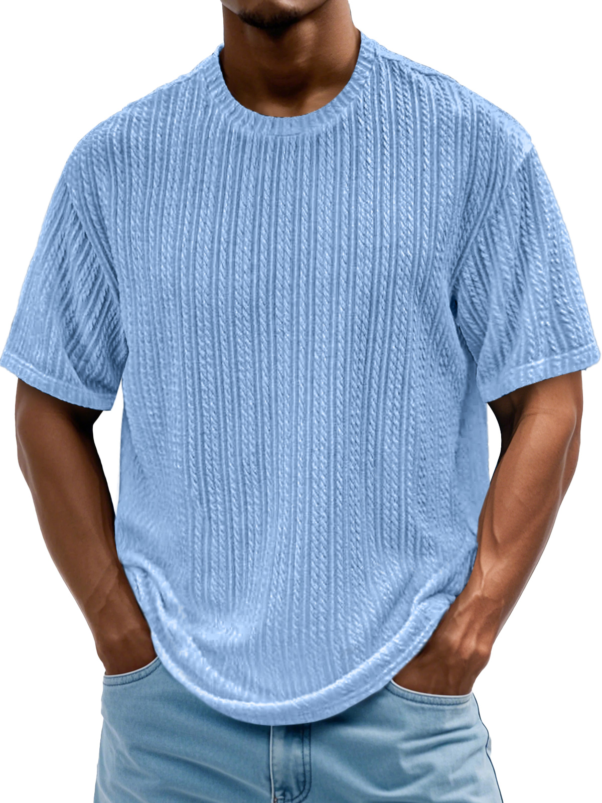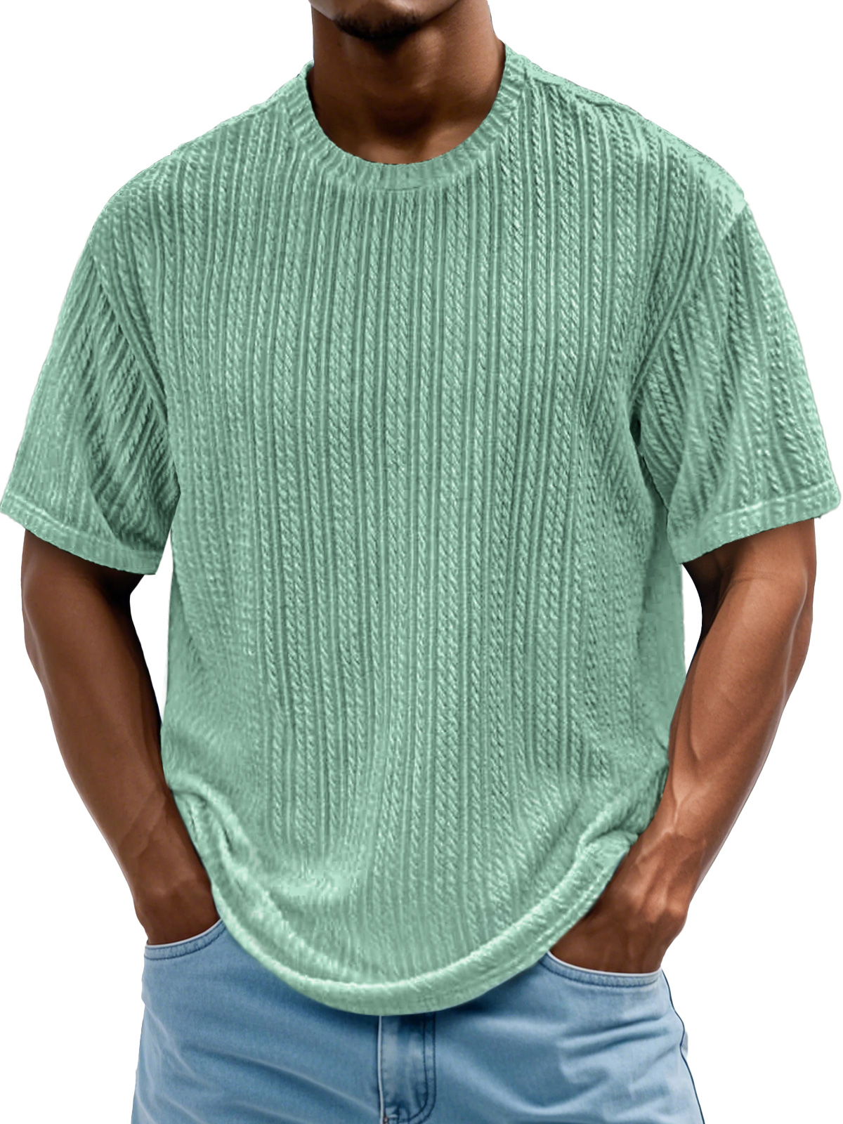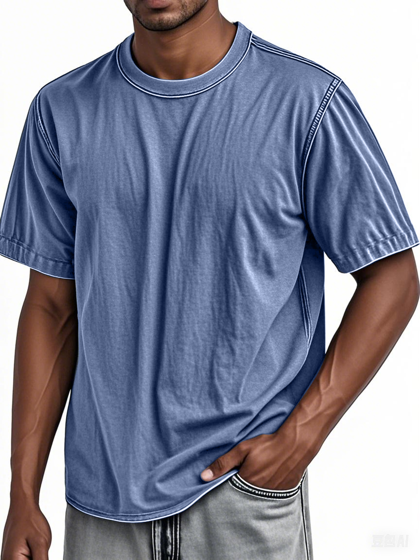 Men's Daily Round Neck Casual Texture Solid Color Comfortable Short-sleeved T-shirt