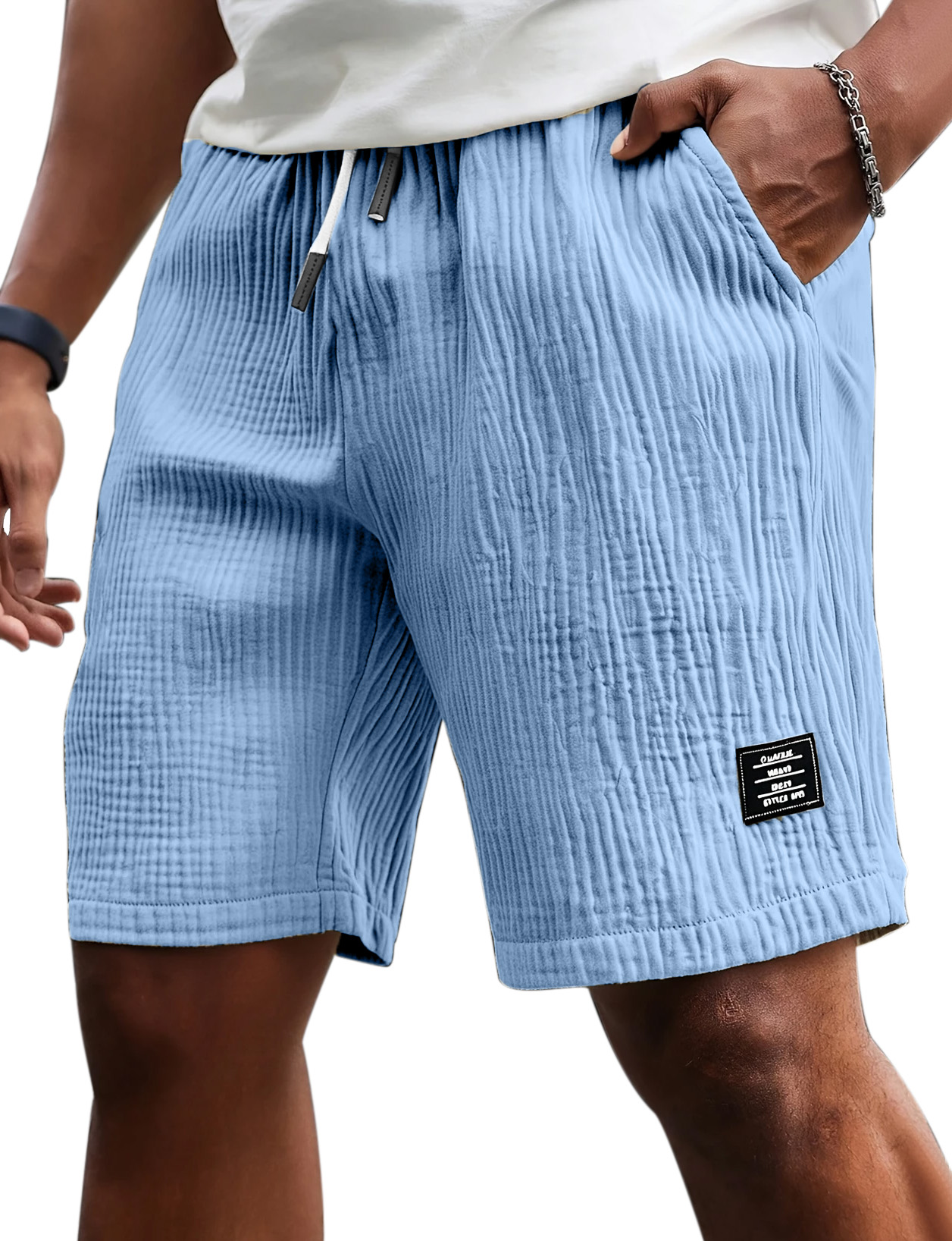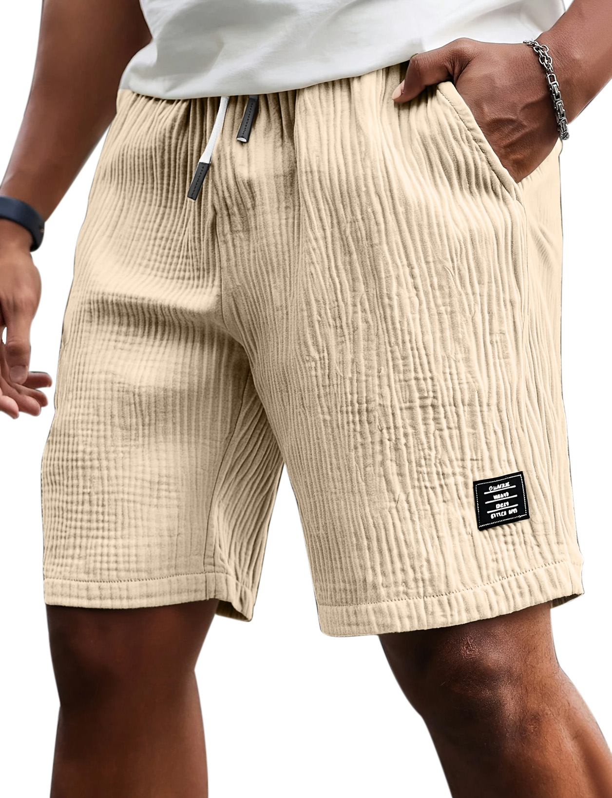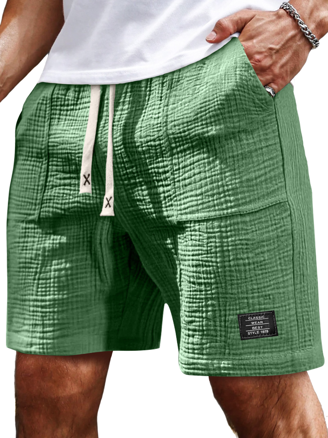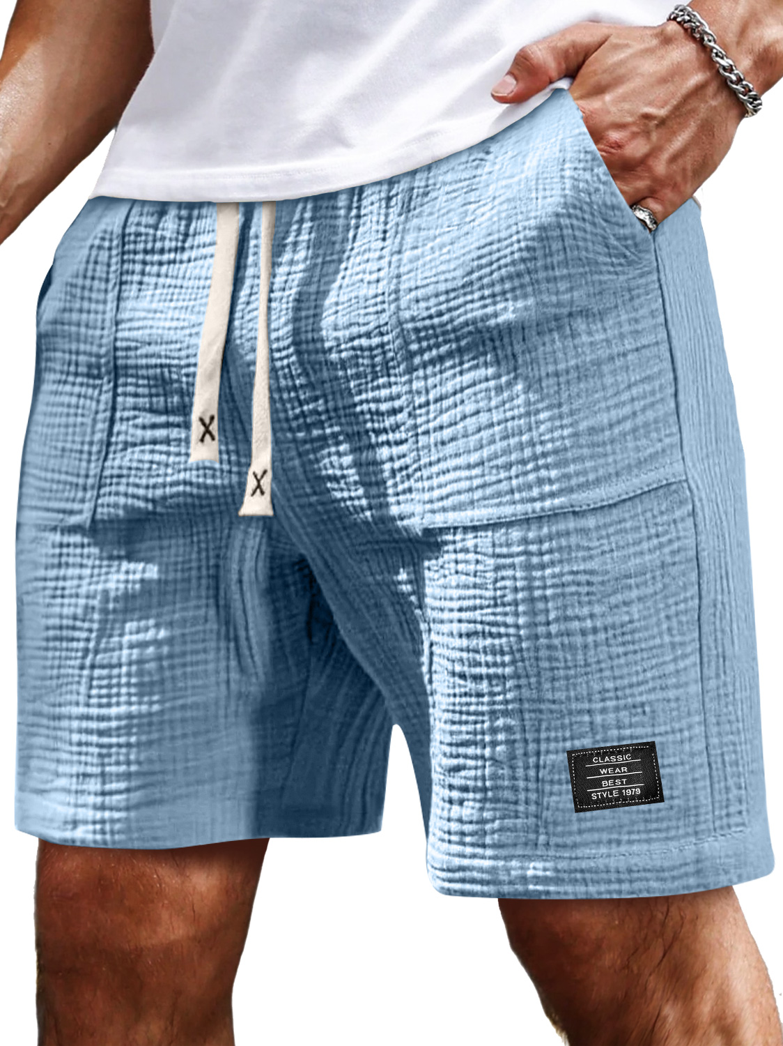 Men's Wrinkled Linen Breathable Resort Casual Embroidered Label Shorts