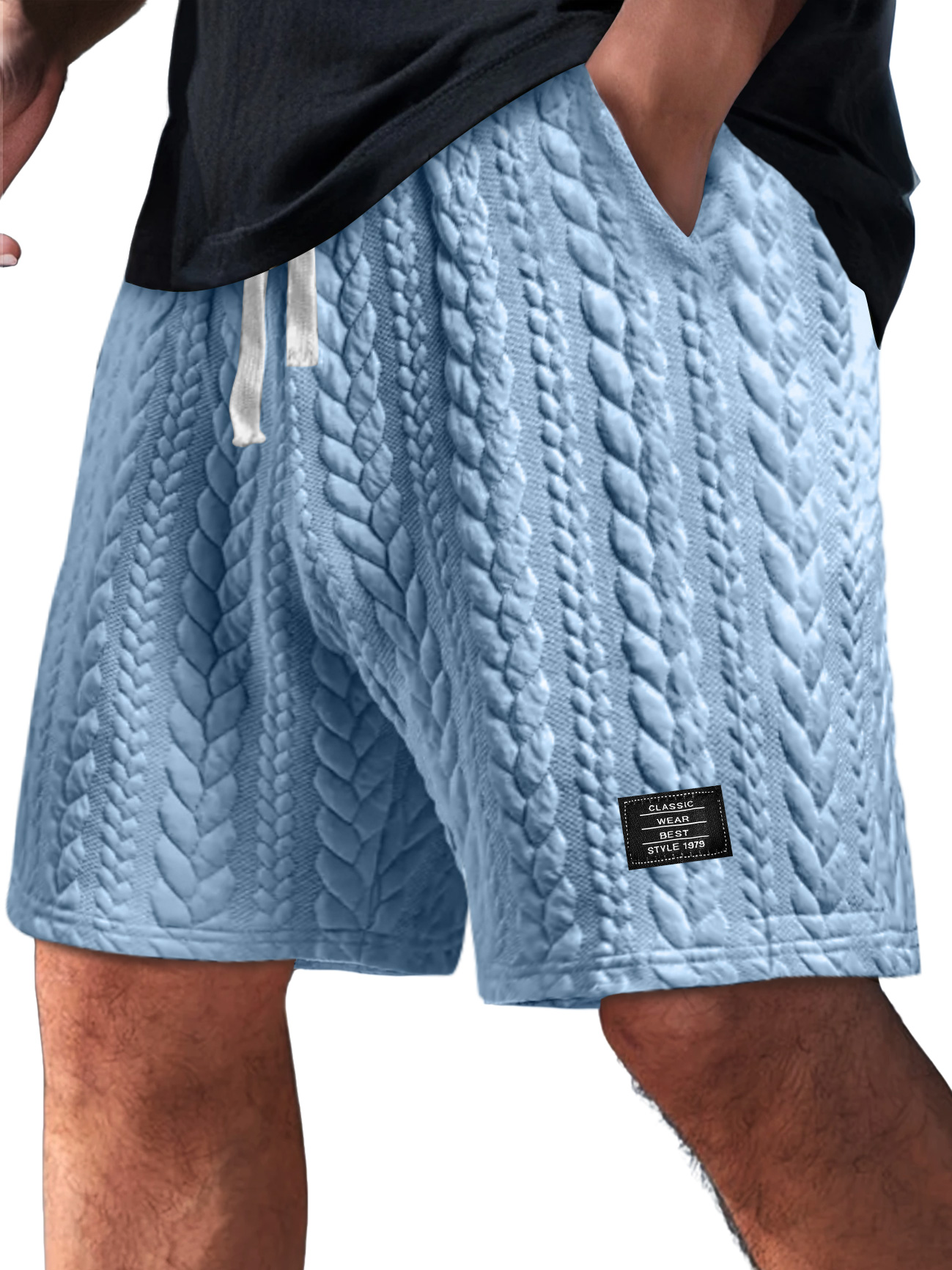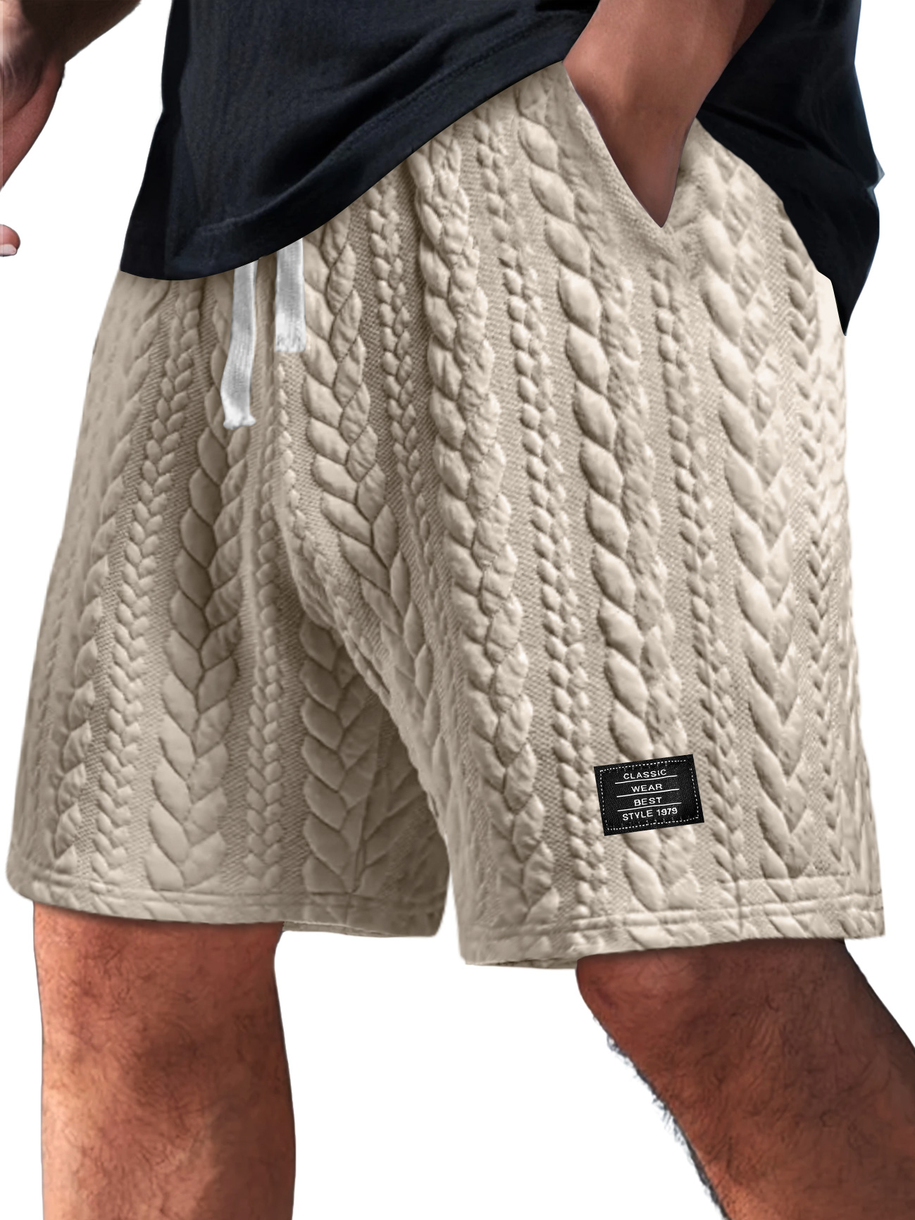 Men's Everyday Texture Embroidered Logo Elastic Waist Drawstring Comfort Shorts
