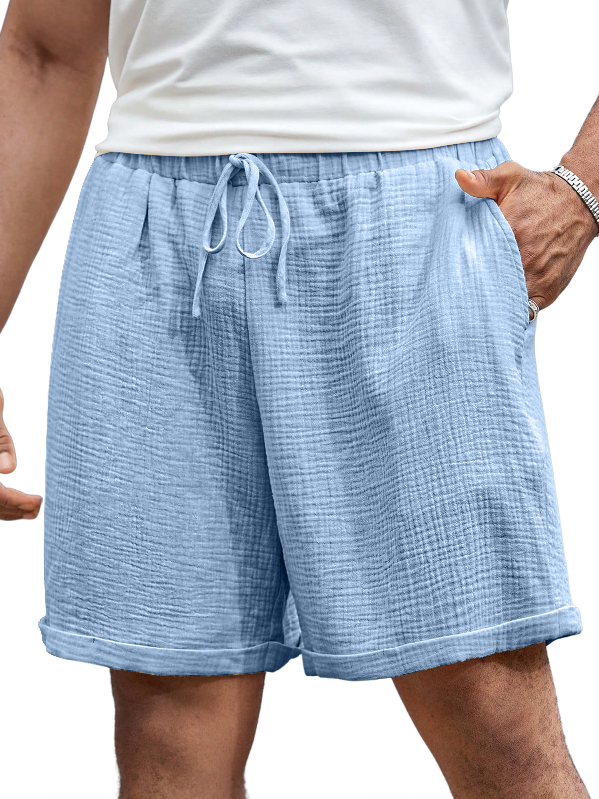 Men's Casual Hawaiian Bubble Wrinkle Comfortable Solid Color Beach Shorts