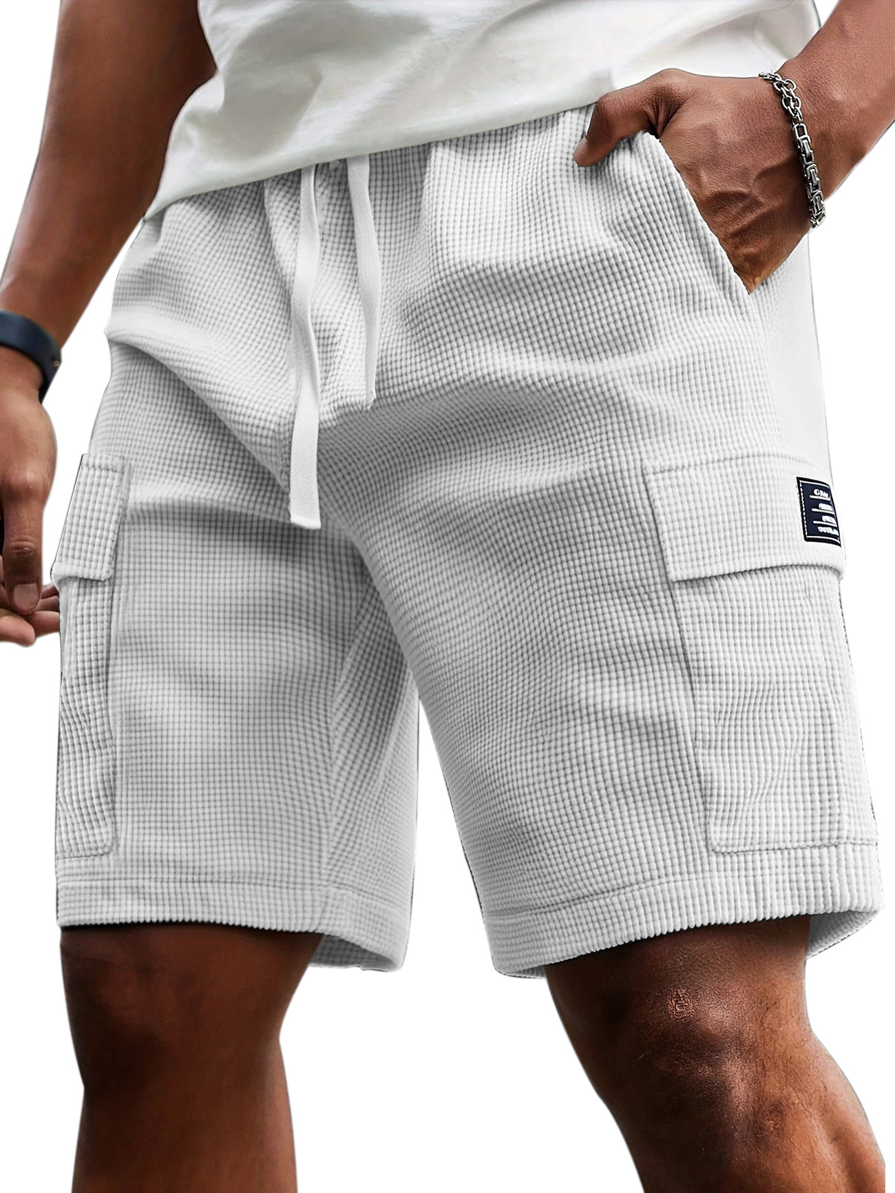 Men's Stylish Multi-pocket Retro Waffle Fabric Simple Logo Daily Casual Shorts